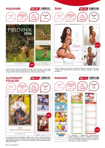 žien. Kalendárium je doplnené o ľudové zvyky a pranostiky a o termíny najvýznamnejších fázy Mesiaca a priestor na poznámky.