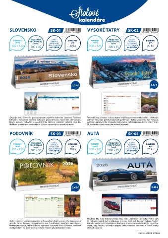 Spoznajte krásy Slovenska prostredníctvom stolového kalendára Slovensko. Týždňový Tatranské štíty, príroda a ľudia zachytené v týždennom stolovom kalendári s riadkovým