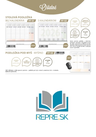 BEZ KALENDÁRIA PP-01 S KALENDÁRIOM PP-02 FORMÁT PRIESTOR