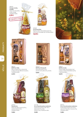 Kvetový med 260 g, vianočný čaj 100 g, Staroslovanská medovina svetlá 180 ml, Staroslovanská medovina tmavá 180 ml,