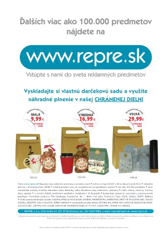 REPRE, s.r.o., Vlčie hrdlo 61, 821 07 Bratislava, tel.: 02/ 4020 9000, e-mail: repre@repre.sk, www.repre.sk