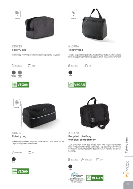100% polyester. Toilet bag made from 50% recycled polyester. Toiletry bags