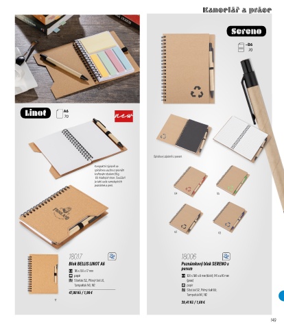 Blok BELLIS LINOT A6 Poznámkový blok SERENO s