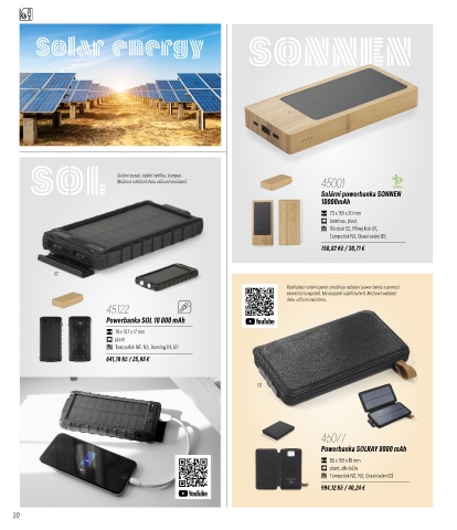 slunečních paprsků. Má ukazatel nabití baterií. Možnost nabíjení