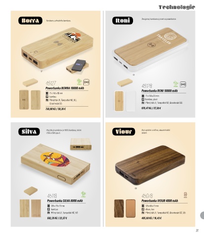 Borra           Vyrobeno z přírodního bambusu.        Roni              Designový bambusový prvek na powerbance.