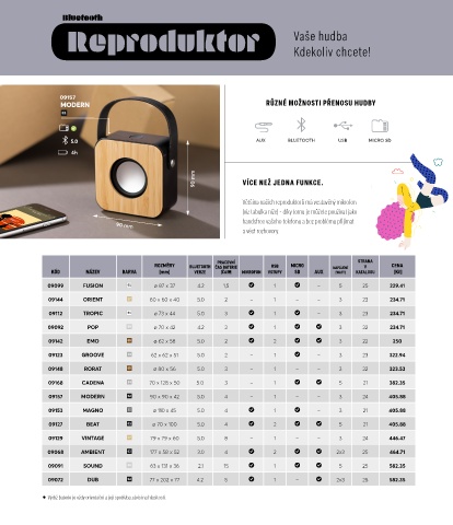 KÓD NÁZEV BARVA [mm] VERZE [ČAS.] MIKROFON VSTUPY SD AUX [WATT] KATALOGU [Kč]