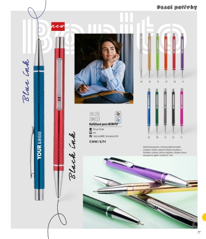 YOUR LOGO Black ink 17,59 Kč / 0,71 € Klasické kovové pero s chromovaným lemováním,