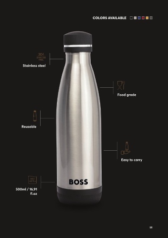 COLORS AVAILABLE Stainless steel Food grade Reusable Easy to carry 500ml / 16,91 fl.oz 55