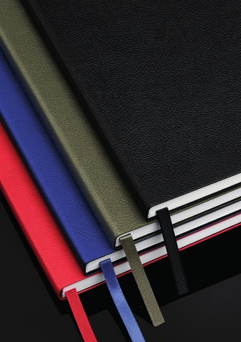 khaki, blue and red. Each version is finished   many small details, such as the page