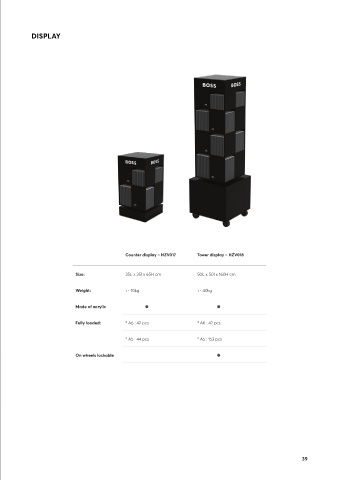 DISPLAY Counter display – HZV017 Tower display – HZV018 Size : 35L x 35l x 65H cm 50L x 50l x 160H cm Weight : +- 10kg +- 40kg Made of acrylic Fully loaded : * A6 : 42 pcs * A6 : 42 pcs * A5 : 44 pcs * A5 : 153 pcs On wheels lockable 38 39
