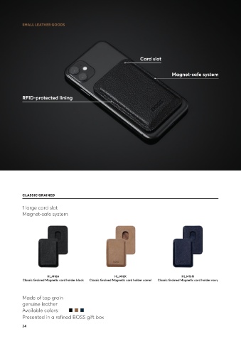 Classic Grained Magnetic card holder black Classic Grained Magnetic card holder camel Classic Grained Magnetic card holder navy