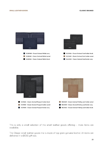 HLP416X - Classic Grained Passport holder camel HLE416N - Classic Grained Folding card holder navy