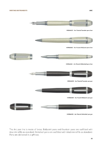 The Arc pen line is made of brass. Ballpoint pens and fountain pens are outfitted with