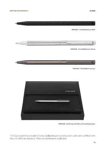 The Cloud pen line is made of brass. Ballpoint pens and fountain pens are outfitted with