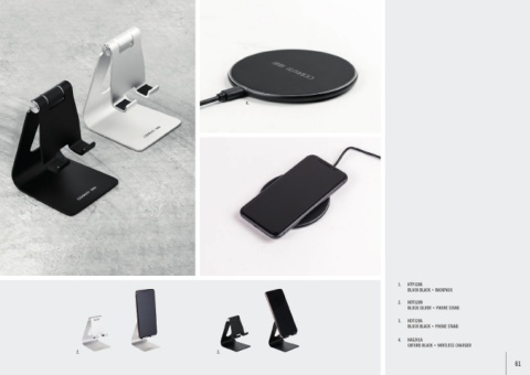 4. 1. NTP328A BLOCK BLACK • BACKPACK 2. NDT328B BLOCK SILVER • PHONE STAND 3. NDT328A BLOCK BLACK • PHONE STAND 4. NAG201A OXFORD BLACK • WIRELESS CHARGER 2. 3. 61