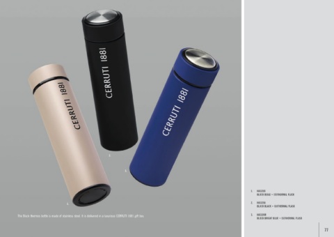 The Block thermos bottle is made of stainless steel. It is delivered in a luxurious CERRUTI 1881 gift box. 3. NAI328M
