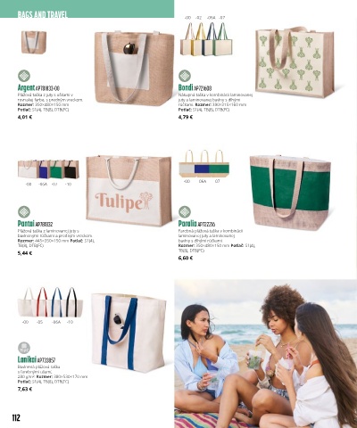 rovnakej farbe, s predným vreckom. juty a laminovanej bavlny s dlhými