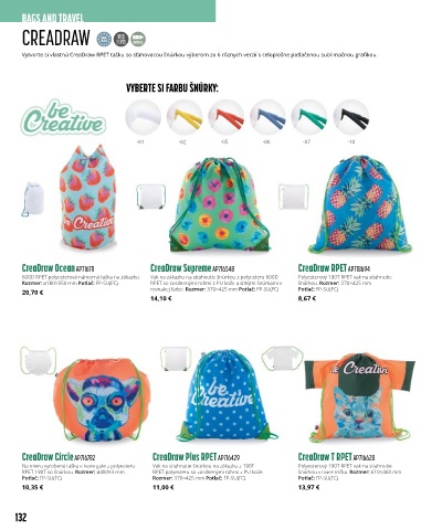 Vytvorte si vlastnú CreaDraw RPET tašku so sťahovacou šnúrkou výberom zo 6 rôznych verzií s celoplošne potlačenou sublimačnou grafikou.