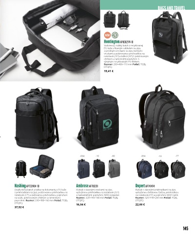 notebook (17") a sieťovanou priehradkou, popruhom a nastaviteľnými popruhmi, 600D polyester. na notebook (15") a popruhmi, 600D nylón.