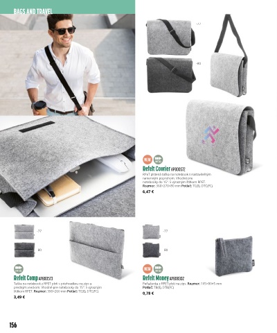 Taška na notebook z RPET plsti s priehradkou na zips a Peňaženka z RPET plsti na zips. Rozmer: 105×80×5 mm