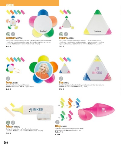 Zvýrazňovač v tvare kvetu s 5 farbami z recyklovaného plastu EcoAllene®. Zvýrazňovač v tvare trojuholníka s 3 farbami z recyklovaného plastu