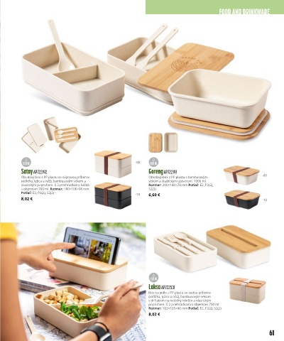 Obedový box z PP plastu so súpravou príborov Obedový box z PP plastu s bambusovým -00
