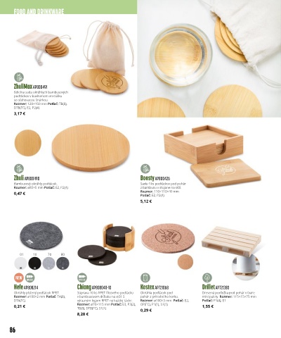 Rozmer: ø100×2 mm Potlač: TA(8), v bambusovom držiaku na stôl. S pohár z prírodného korku. mini palety. Rozmer: 115×15×75 mm