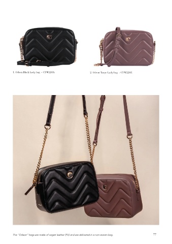 1. Odeon Black Lady bag - CTW220A 2. Odeon Taupe Lady bag - CTW220Z The “Odeon” bags are made of vegan leather (PU) and are delivered in a non-woven bag. 77