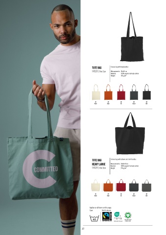 T O TE B A G Canvas bag with bellows and short handles. Canvas bag with long handles (72 cm).
