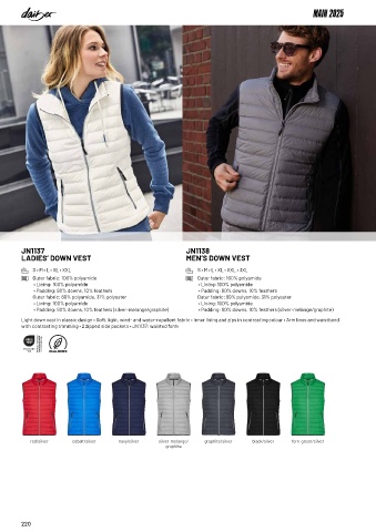 LADIES’ DOWN VEST MEN’S DOWN VEST