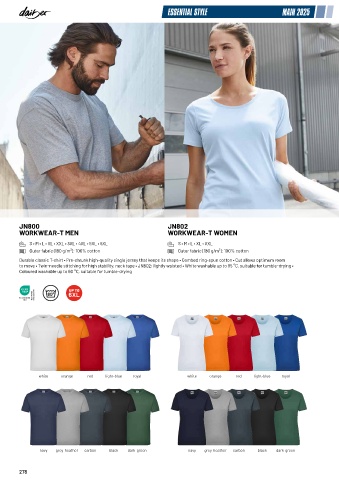 to move • Twin-needle stitching for high stability, neck tape • JN802: lightly waisted • White washable up to 95 °C, suitable for tumble-drying •