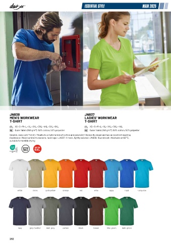 resistance • Neck band with elastane, neck tape • JN837: V-neck, lightly waisted • JN838: Round neck • Washable at 60 °C,