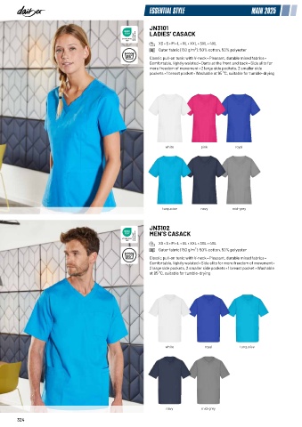 Classic pull-on tunic with V-neck • Pleasant, durable mixed fabrics •