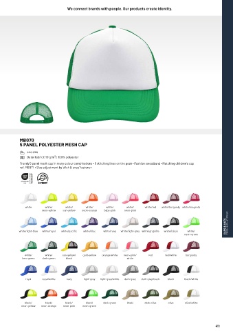 Trendy 5 panel mesh cap in many colour combinations • 6 stitching lines on the peak • Fashion sweatband • Matching children’s cap