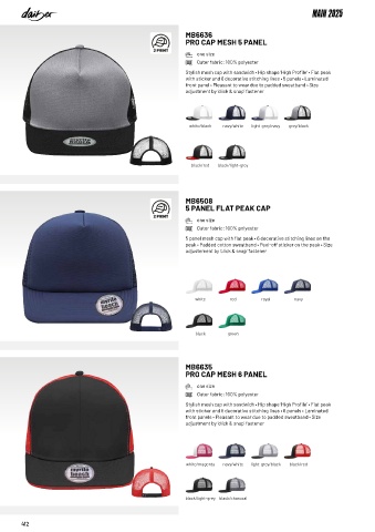 5 panel mesh cap with flat peak • 6 decorative stitching lines on the