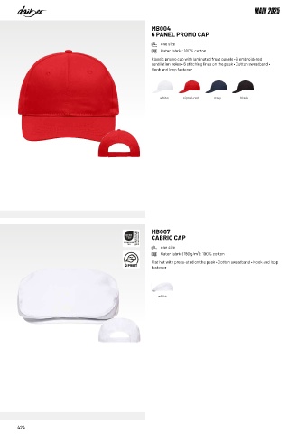 ventilation holes • 6 stitching lines on the peak • Cotton sweatband •