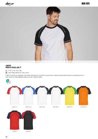 T-Shirt in casual two-tone look • High quality Single jersey • Combed ring-spun cotton • Raglan sleeves and neck band in contrasting colour •