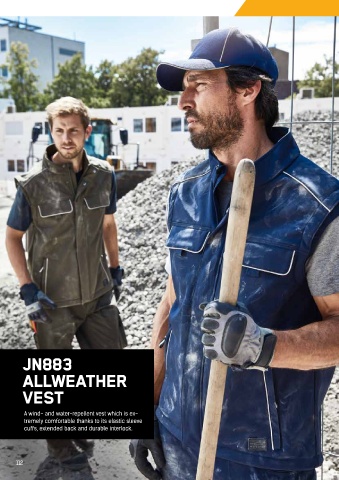 JN883 ALLWEATHER VEST A wind- and water-repellent vest which is ex- tremely comfortable thanks to its elastic sleeve cuffs, extended back and durable interlock. 112