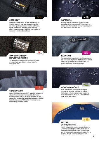 sorona AURA fibers consist of 37% vegetable components, The textile is protected against water and dirt by