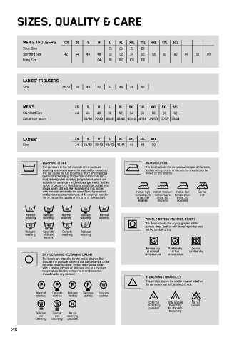 SIZES, QUALITY & CARE