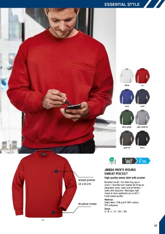 Brushed inside    Outer fabric (300 g/m²): 80% cotton,