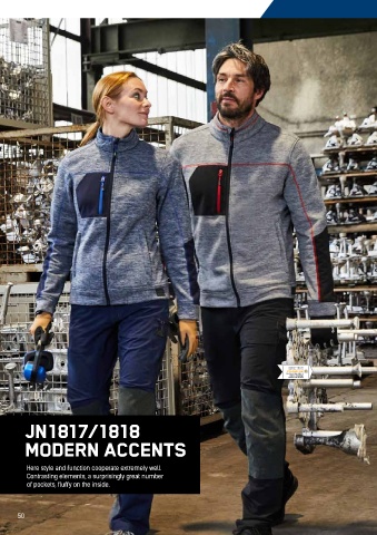 JN1817/1818 MODERN ACCENTS Here style and function cooperate extremely well. Contrasting elements, a surprisingly great number of pockets, fluffy on the inside. 50