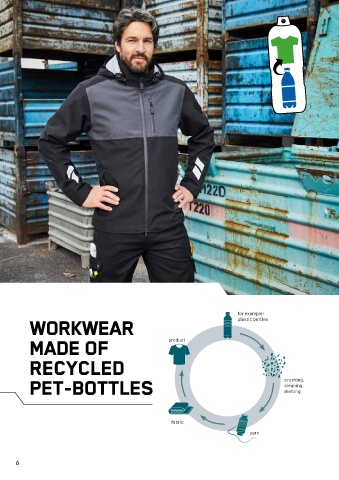 for example: WORKWEAR plastic bottles MADE OF product RECYCLED PET-BOTTLES crushing, cleaning, melting fabric yarn 6