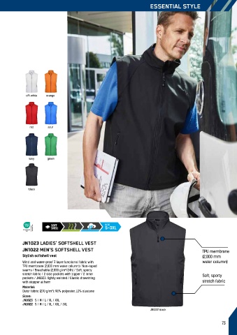 JN1022 MEN‘S SOFTSHELL VEST TPU membrane