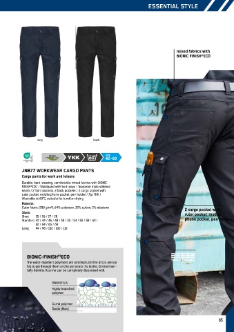 Outer fabric (280 g/m²): 64% polyester, 33% cotton, 3% elastane 2 cargo pocket with