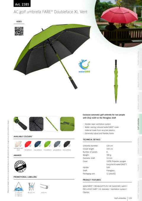 • Double-layer ventilation system Golf umbrellas Golf umbrellas