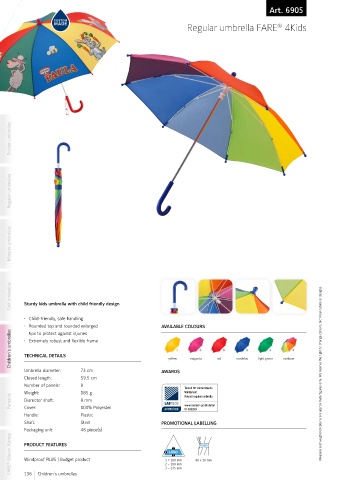 Children´s umbrellas Children´s umbrellas • Extremely robust and flexible frame yellow magenta red euroblue light green rainbow
