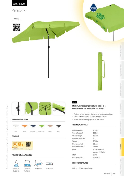 AVAILABLE COLOURS • Promotional labelling option on the volant