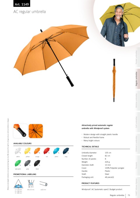 1 = 170 mm 85 x 15 mm ø 20 mm Windproof | AC (automatic open) | Budget product