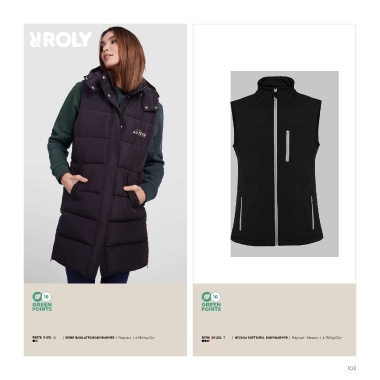 16 16 R5076 S-2XL f | REINE INSULATED BODYWARMER | Polyester | 4.950 kg CO 2 e R1199 XS-2XL | NEVADA SOFTSHELL BODYWARMER | Polyester - Elastane | 4.750 kg CO 2 e 103
